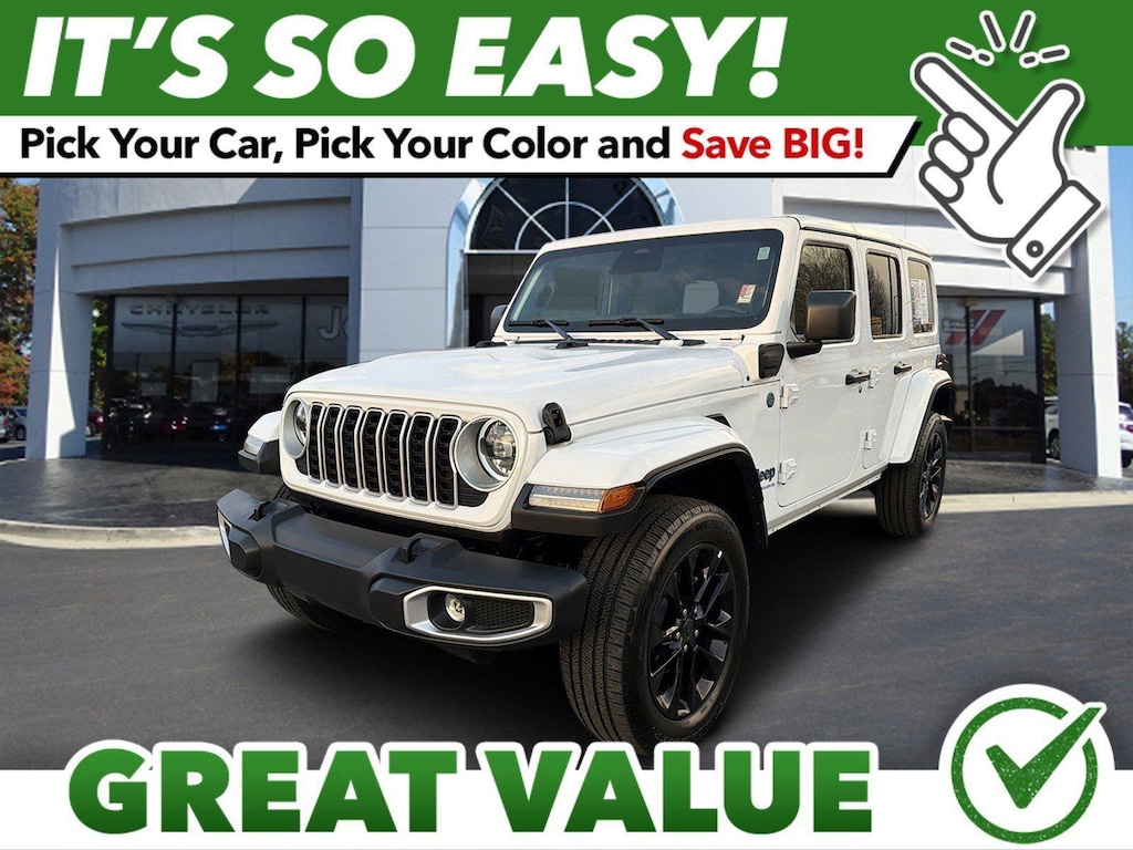 ENGINE: 2.0L I4 DOHC DI TURBO PHEV, TRANSMISSION: 8-SPEED AUTO 8P75PH PHEV, QUICK ORDER PACKAGE 29P SAHARA 4XE, BRIGHT WHITE CLEARCOAT, BLACK, CLOTH LOW-BACK BUCKET SEATS, SAFETY GROUP, BODY COLOR 3-PIECE HARD TOP, FRONT LICENSE PLATE BRACKET Come on in to Mall of Georgia Chrysler Dodge Jeep Ram today at 4345 Buford Dr Buford GA 30518 or call 678-730-5643 to schedule a test drive!