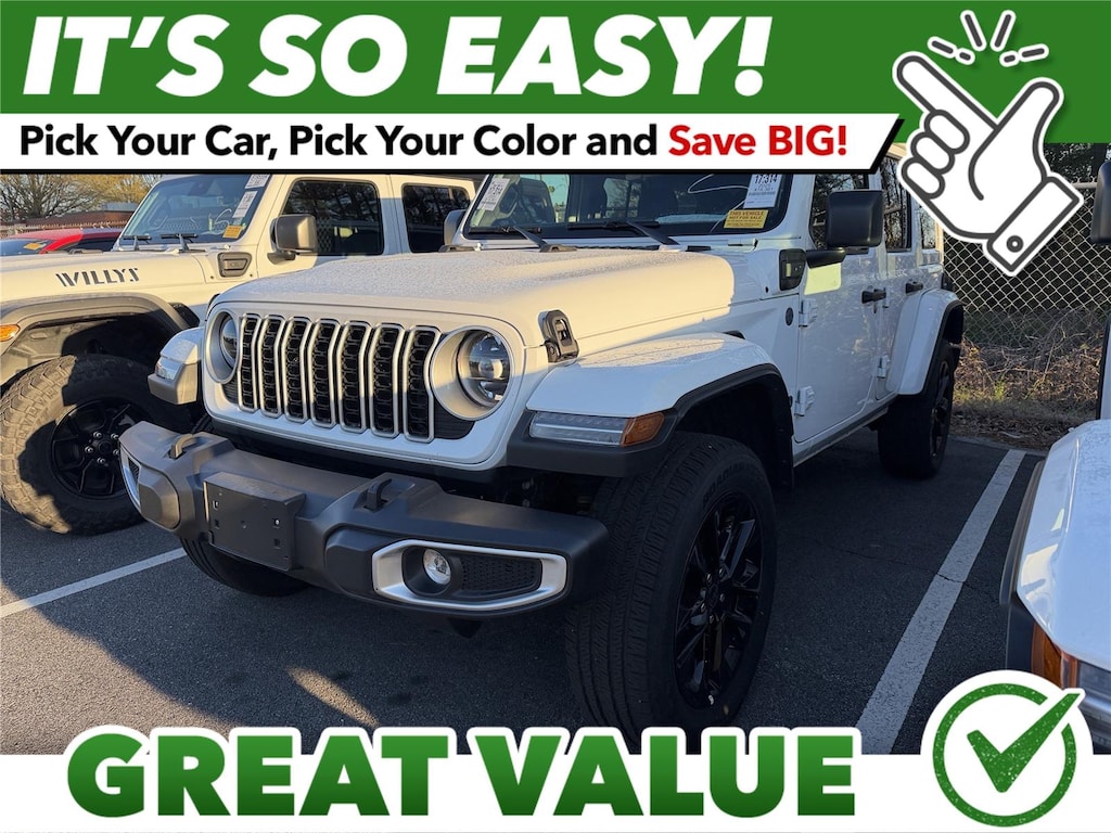 ENGINE: 2.0L I4 DOHC DI TURBO PHEV, TRANSMISSION: 8-SPEED AUTO 8P75PH PHEV, QUICK ORDER PACKAGE 29P SAHARA 4XE, BRIGHT WHITE CLEARCOAT, BLACK, CLOTH LOW-BACK BUCKET SEATS, SAFETY GROUP, SKY 1-TOUCH POWER TOP, FRONT LICENSE PLATE BRACKET Come on in to Mall of Georgia Chrysler Dodge Jeep Ram today at 4345 Buford Dr Buford GA 30518 or call 770-945-0839 to schedule a test drive!